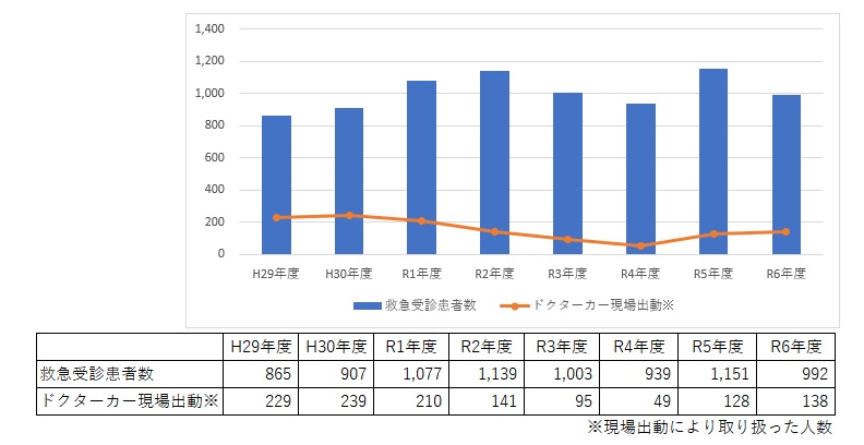 救命救急センターの救急患者総数とドクターカー出動件数